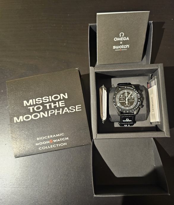 Prodajem Omega x Swatch sat iz kolekcije Mission to the Moonphase u originalnom pakiranju. Sat je u savršenom stanju, par puta nošen. Elegantni crni dizajn s kronografom idealan je za sve ljubitelje prestižnih satova.