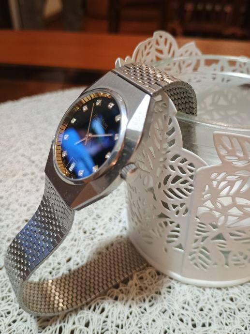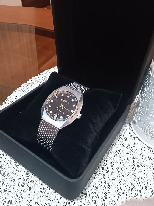 Prodaje se sat u odličnom stanju i potpuno ispravan.Prilično rijedak sat sa eta mehanizmom 7rubisa.. Promjer 33mm mada se nosi kao veći sat zbog oblika kučišta.lp