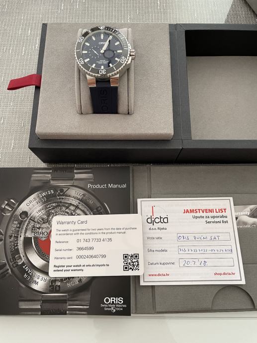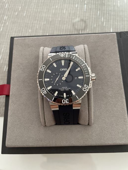 Prodajem oris aquis small second. Mehanizam: kalibar Oris 743 (osnova Sellita SW220-1). Ima keramičku krunicu,38 sati rezerva snage,datum,safirno staklo. Vodootpornost do 50 bara(500m). Nošen povremeno. Stanje savršeno. Bez i jedne ogrebotine na krunici i staklu … posjedujem sve papire od sata,račun iz Dicte…napravljen servis u Dicti … bez zamjena