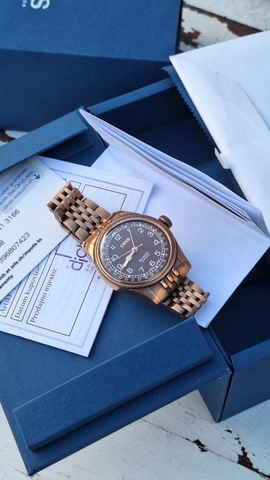 Prodajem Oris Big Crown Bronze Pointer Date u top stanju, kupljen u Dicti 12/2024, dolazi sa kutijom, papirima, garancijom do 12/2027.