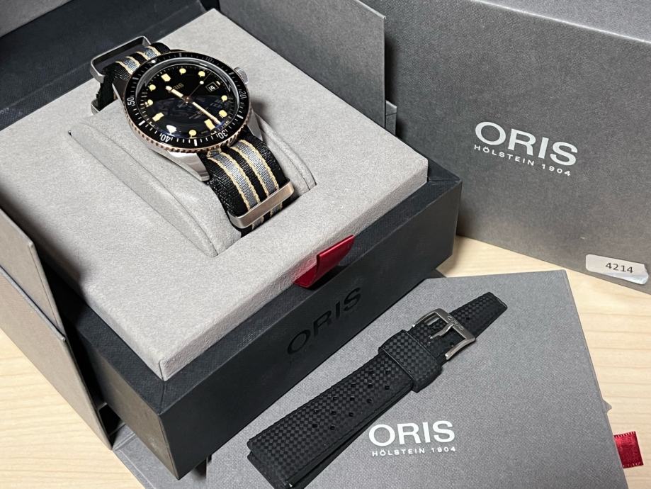 U savršenom stanju (nošen par puta sa nato remenom) prodajem sat Oris Diver 65 sa kpl Box, Papers, decembar 2023. Sat je u top formi. Veličina 42mm, brončani bezel, safirno “dommed” staklo, originalno na gumenom remenu. Dodatno još nato in smeđi kožni remen. Sat je pravi “Strap monster”…