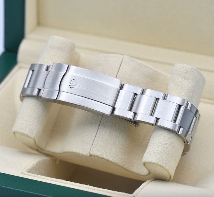 With 904L steel, 18 carat gold hands and indexes, chronometer-certified in-house movement, oyster case, oyster bracelet and 10 year recommended service interval, this watch is as purely Rolex as a Rolex can be, with all the promises of precision, reliability and an exceptionally high degree of fit and finish.