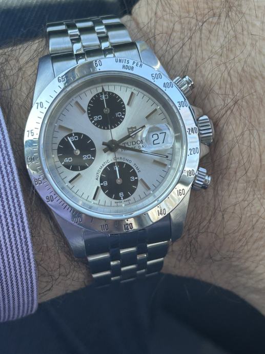Prodajem prelijepi Tudor chronograph ref. 79280. Sat je pod servisnom garancijom (digit. kartica) iz Malalana do 07.2027. Vrll atraktivan model, najsličniji Rolex Daytoni. Narukvica duljine cca 20 cm. Sat je u top stanju i dolazi s Tudor pouch-em i digitalnom servisnom karticom. Prodaje se za 4200 eura. Za ozbiljnog kupca odobravam razuman popust. Kontakt i ponude molim na
