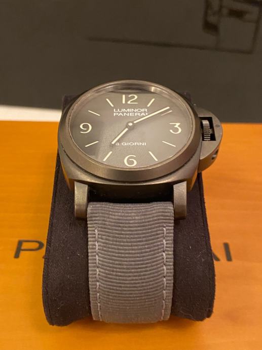 • Brojčanik: Ekskluzivni “fumé” (gradijentni) brojčanik u sivoj nijansi – prvi takav u povijesti Paneraija – s prepoznatljivim “sandwich” dizajnom i Super‑LumiNova luminiscentnim markerima