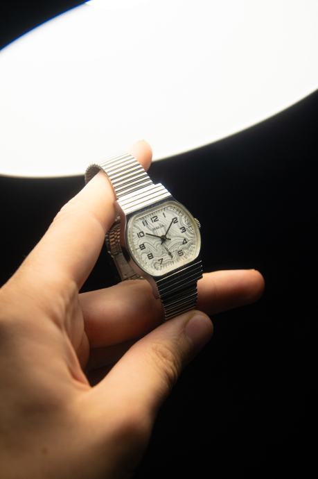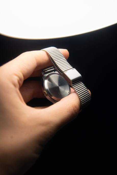 Dolazi na metalnoj narukvici, no slobodno pitajte ako biste htjeli kožni remen, boja po izboru.