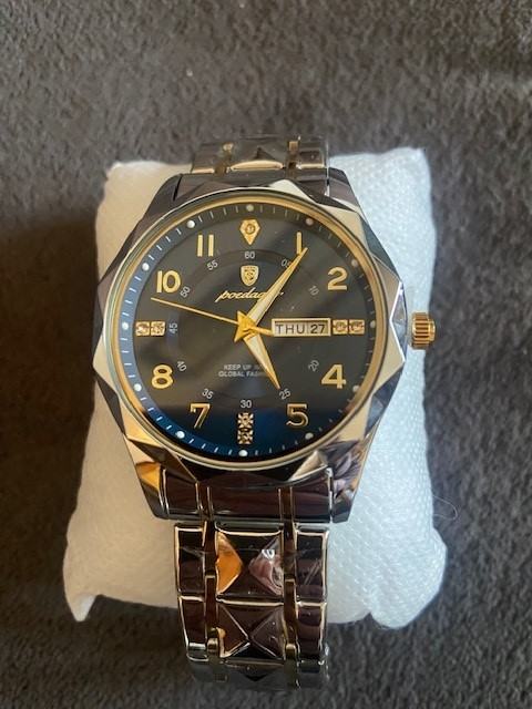 Prodajem novi muški sat Poedagar na baterije. Promjer brojčanika je 4.3 cm i ima metalnu narukvicu promjera 7 cm koju mogu skratiti. Dostava moguća osobno u Zagreb i Veliku Goricu.