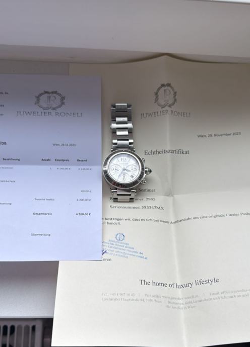 Prodajem Cartier Pashu 2995, dolazi sat sa Cartier torbicom, naknadno je kupljen 2023, od trgovačke kuće te posjeduje njihov certifikat i račun, tako da je sat legitiman.