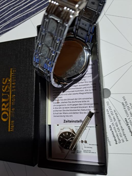 Prodajem novi muški sat marke Oruss,novi zapakirano u originalnoj ambalaži papirima i kutijom,cijena za isti 19 eura .Upitati na broj mobitela 095 822 8933 ili putem SMS-a, Viber, Vhatsap, te putem njuskala. Moguća dostava na vašu adresu putem HP-a, preporučenom pošiljkom ,ili putem Tiska stvar dogovora +3 eura troškovi dostave. Pogledajte sve moje oglase.
