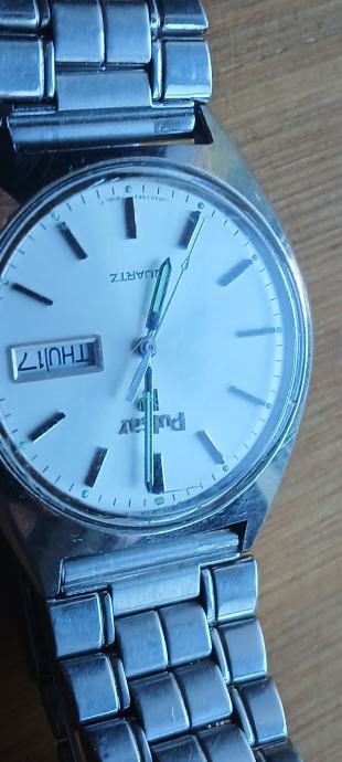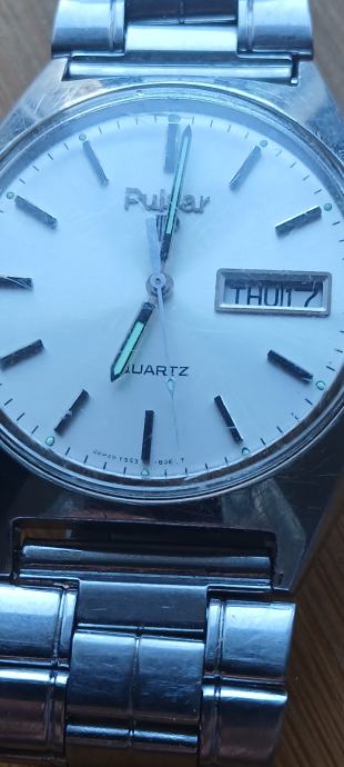 Pulsar Y563-8059 dan i datum vintage baterijski sat.Potpuno ispravan sve uredno radiu dobrom stanju. Čelik kučište promjera 37mm,dobra metalna narukvica,nova urarska baterija.