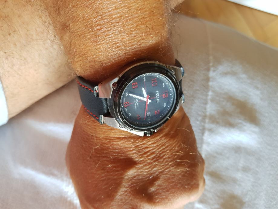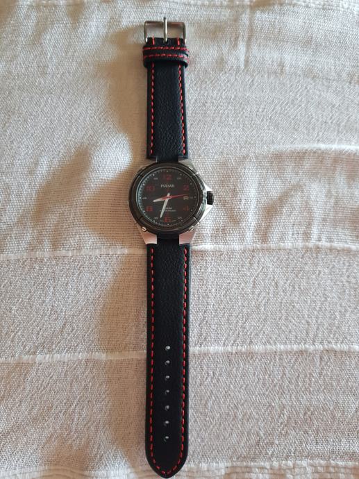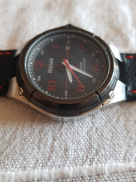 Pulsar pripada seiko grupi. . Vodootporan 100 metara. Japanski mehanizam. Potpuno novi njemacki kozni remen i baterija. Placeno 200 kn. Očuvan i neoštećen.