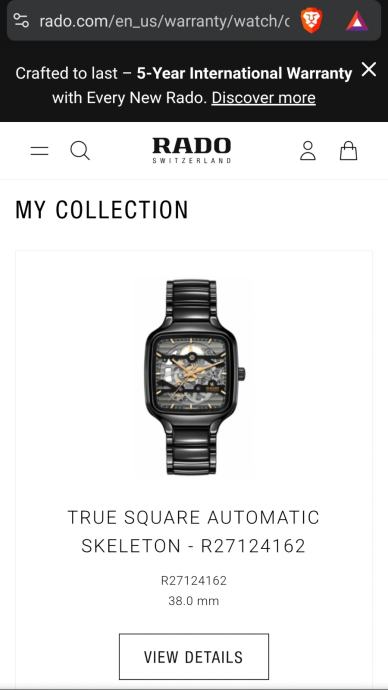 Rado True Square Automatic Skeleton