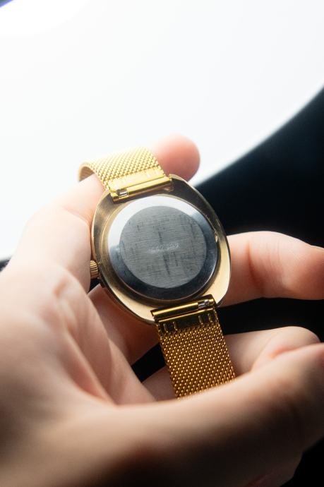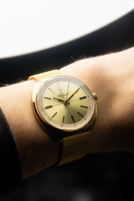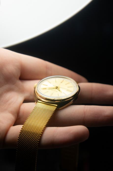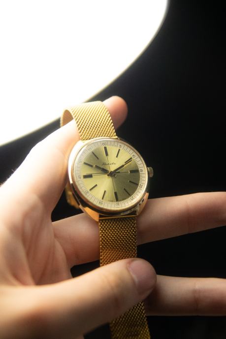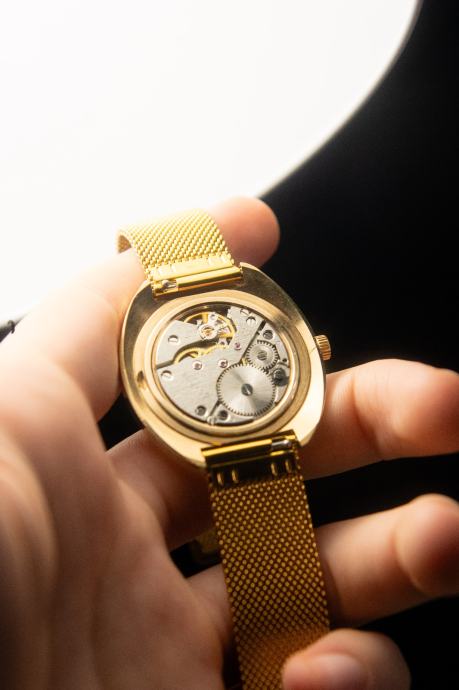 Prodajem stari sat Raketa u gotovo savršenom/mint stanju. Brojčanik je bez greške, kućište bez većih ogrebotina, a pozlata se nigdje ne skida. Jedina mana mu je to što je staklo malo kvrcnuto na 11 sati, no gotovo je neprimjetno, a s obzirom da je gore originalno staklo nisam ga htio mijenjati.