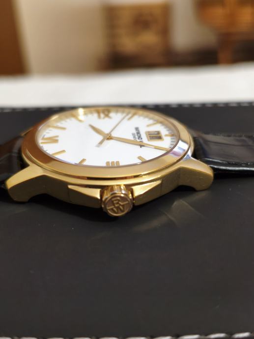 Na prodaju je Raymond Weil Geneve u odličnom stanju sa svojim orginal remenom koji je skinut i potpuno novim kožnim koji je trenutno na njemu.Promjer je 39mm,safirno staklo sa AR-om, orginal kopča i potpisana krunica.lp.