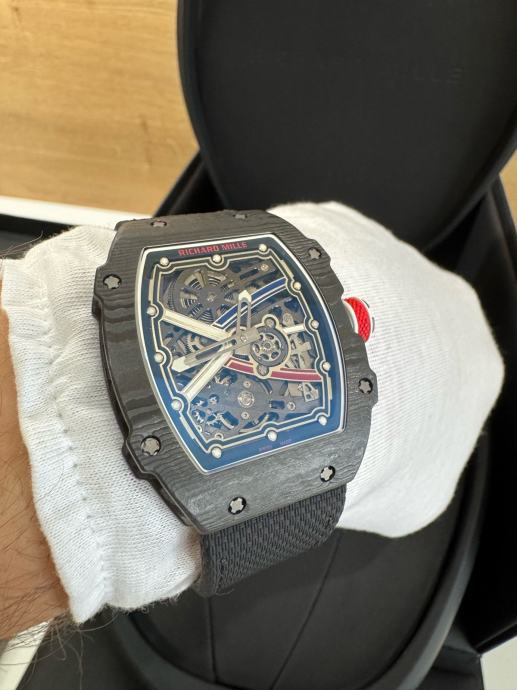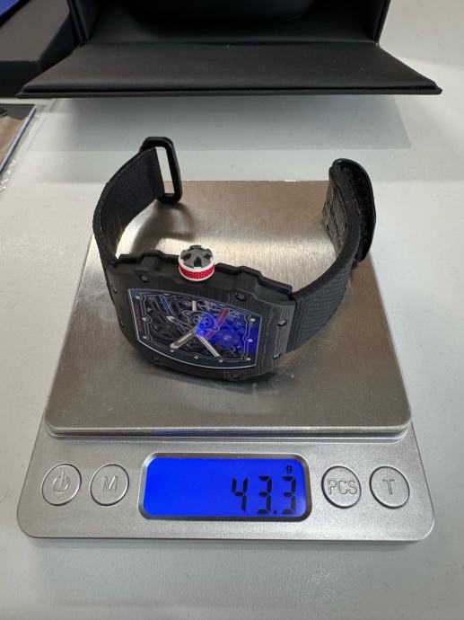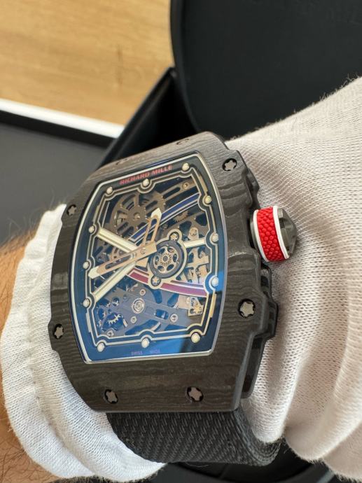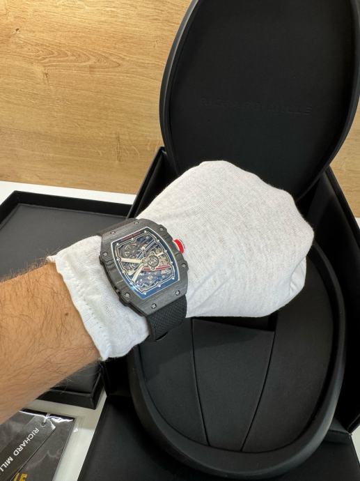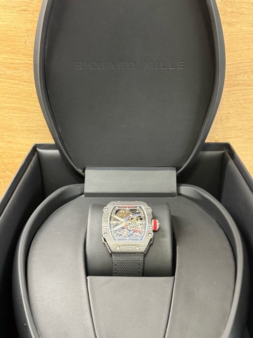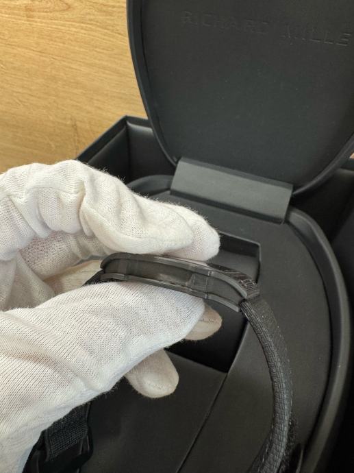 Njegovo karakteristično zaobljeno kućište izrađeno je od pravog TPT RM carbona koje onogucuje izuzetno visoku tvrdoću i minimalnu masu sata.