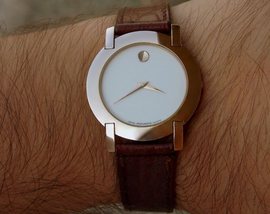 "Movado" - poznati švicarski brand satova koji stvara skladnu vezu visoke tehnologije ručnih satova i umjetnosti ... jedan je od vodećih proizvođača švicarskih satova koji privlače pažnju svojom elegancijom i autentičnošću ... "Movado" se dokazao kao brand koji impresionira svojim umjetničkim i raznovrsnim kolekcijama za koje se ne možete odlučiti da li ih želite nositi na ruci ili uokviriti poput predmeta netaknute ljepote ... o počecima "Movado" tvrtke od 1881. godine u švicarskom gradiću La Chaux de Fonds, o 19-godišnjem Achilles Ditesheimu, o dobivenim nagradama, uspjesima, o samom nazivu "Movado" (riječ iz Esperanto jezika I u prijevodu znači "uvijek u pokretu") -pisao sam u svojim ranijim tekstovima, tako da bih tekst posvetio većem dijelu konkretnom modelu koji su označavali sa "luksuzni predmet požude" ... "Movado Museum "Modeli satova su lako prepoznatljivi - satovi bez oznake, samo s" točkom "na poziciji 12h ... Jednostavnost , nepogrešiv stil i funkcionalnost su karakteristike "Movado Museum" modela ... iako dosta ljubitelja satova smatra da korijeni i "Museum" ideja potječe iz 1919. godine i vezuje se za grupu internacionalnih umjetnika osnivača Bauhaus škole, a najčistija ekspresija ovog dizajna je sat koji je dizajnirao 1947. godine dizajner Nejtan Džordž Horvit ... obzirom da je točka predstavljala "izlazeće Sunce", ostale su upamćene I riječi ovog dizajnera- "Mi ne poznajemo vrijeme kao brojčanu sekvencu, već samo kao poziciju Sunca u odnosu na Zemlju koja se okreće "... I ako je pokušao prodati svoj dizajn tvrtkama, Nejtan je tada nailazio na nerazumijevanje I odbijanje jer su smatrali besmislenim" sat bez markera "-zbog čega su se mnogi proizvođači satova pokajali kada je" Museum "dizajn kasnije postao legendaran I besmrtan, i stil "Muzeja" proglašen je jednim od najboljih dizajna satova ikad dizajniranih ... dizajn koji karakterizira neodoljiva elegancija cija, au današnjici se smatra "ikonom modernizma" ... jedna od činjenica jest da su mnogi muzeji počeli kupovati sat sa ovim dizajnom, I uspjeh je tamo gdje ni jedan sat nikada nije uspio-da se nađe u Muzeju suvremenih umjetnosti u New Yorku ... Sat koji se prodaje jeste jedan od rjeđih modela "Movado Museum" proizveden na kraju 1980ih godina ... sat u pozlati sa lugovima koji su "integrirani" u kućište ... za razliku od kvarcnih "Movado Museum" koji se prave u današnjici sa crnim cíferom, tankim kućištem I tankim lugovima, ovo je jedan od rijetkih modela sa zadebljenim kućištem I lugovima ... u samom satu potpisani Movado mehanizam vrhunske kvalitete ETA 955.432 (kalibar koji se sreće u mnogim kvalitetnim luksuznim satovima) ... na fotografijama pored originalnih oznaka na mehanizmu možete vidjeti sve originalne oznake I na svim dijelovima sata (cifer, poklopac, narukvica ...) ... sat je potpuno ispravan u radu-današnjeg dana je stavljena nova Renata baterija ... lijepa kopija elegantnog sata - debljine 0,55 cm (s dimenzijama 3,45 cm x 3,92 cm izgleda lijepo i elegantno) ....POGLEDAJTE I MOJE OSTALE RIJETKE SATOVE IZ VELIKE KOLEKCIJE KOJI SE PRODAJU PO NAJNIŽIM CIJENAMA U SVIJETU.