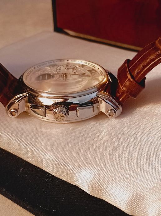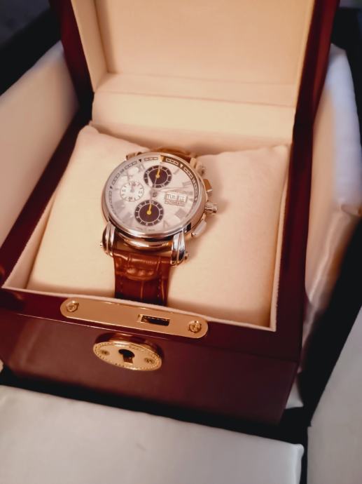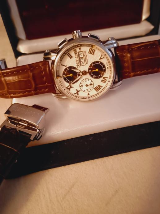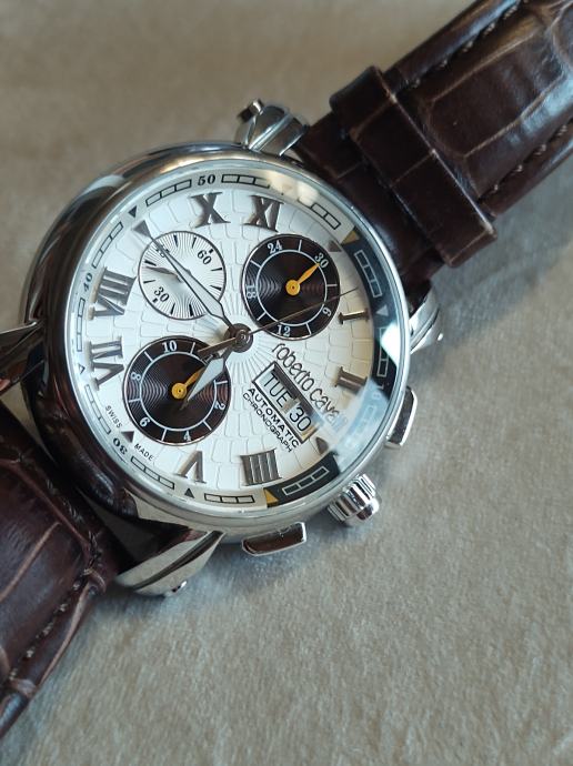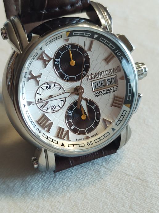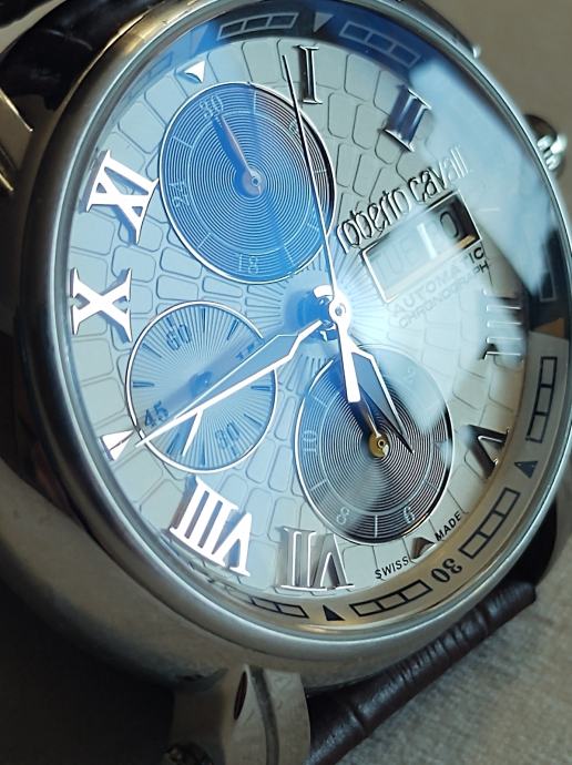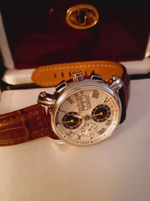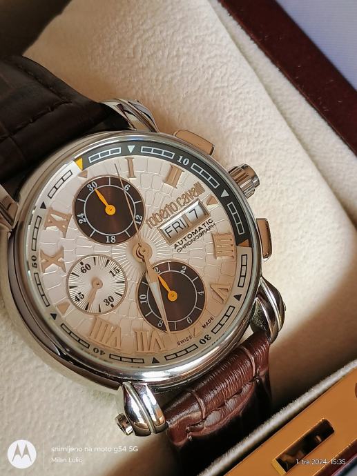 Prodaje se sat napravljen za 40-tu godišnjicu Roberta Cavallia a napravio ga je Franck Muller.Mehanizam je Valjoux 7750 top grade,krunica na navoj,wr 5bara,safirno staklo sa AR-om naprijed i otraga.glusche ciferblat,promjer 43mm a debljina 15,5.Lp.