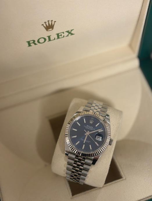 Prodajem rabljeni Rolex Datejust 126334 s elegantnom plavom brojčanicom i prepoznatljivim Jubilee remenom. Ovaj prestižni muški sat dolazi u originalnoj Rolex kutiji. Za vise slika i informacija whatsapp