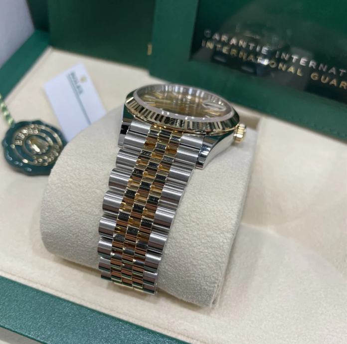 Prodajem novi upakiran sat Rolex DATEJUST 36mm BICOLOUR (CHAMPAGNE DIAL) sa ETA 3235 automatskim mehanizmom. U pitanju je clon SOLID SWISS i ne replika 3A!!! Verzija sata je SOLID SWISS trenutno najbolji moguči kvalitet na tržištu, sat se proizvodi u Švicarskoj i dolazi direktno iz fabrike SOLID SWISS!