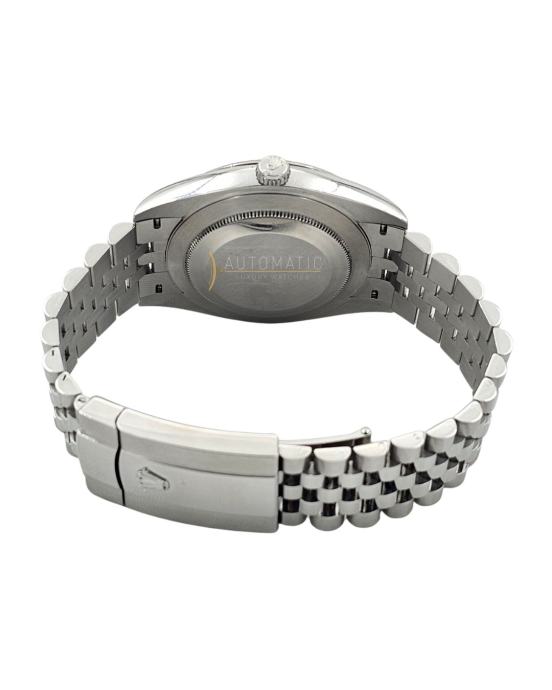 Kućište prečnika 41 mm izrađeno je u prepoznatljivom Oyster dizajnu, koji obezbeđuje izuzetnu izdržljivost i udobnost na ruci. Sat pokreće pouzdani Rolex automatski mehanizam, poznat po vrhunskoj preciznosti i dugotrajnosti. Safirno staklo sa Cyclops lupom iznad datuma dodatno naglašava funkcionalnost i autentičan Rolex identitet.