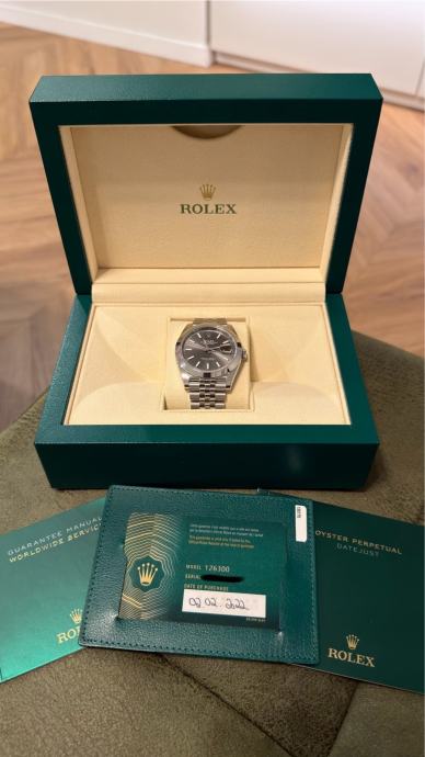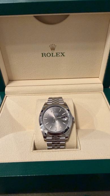 Rolex Datejust 41 (2022), nenošen, full set sa svim originalnim papirima i kutijom. Sat je provjeren kod Malalana u prosincu 2025. Jubilee narukvica. Odlično stanje, bez tragova nošenja.