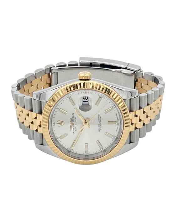 Model Rolex Datejust 41 predstavlja savršen spoj sportskog karaktera i bezvremenske elegancije po kojoj je Rolex prepoznatljiv decenijama. Referenca 126333, predstavljena u 41mm kućištu, izrađena je od kombinacije Oystersteel čelika i 18k žutog zlata, čime postiže prepoznatljiv “Rolesor” izgled. Sat pokreće Rolex manufakturni automatski kalibar 3235, poznat po izuzetnoj preciznosti, pouzdanosti i rezervi snage od približno 70 sati. Kućište prečnika 41mm pruža savršen balans između klasične proporcije i modernog prisustva na ruci. Fluted bezel od žutog zlata dodatno naglašava luksuzni karakter modela, dok datum na poziciji 3 sata sa Cyclops uvećanjem ostaje jedan od najprepoznatljivijih elemenata kolekcije Datejust. Model iz 2016. godine predstavlja izuzetnu priliku za kolekcionare i ljubitelje prestižnih časovnika, jer kombinuje moderni mehanizam i klasičan Rolex dizajn koji nikada ne izlazi iz mode. Rolex Datejust 41 126333 je idealan izbor za poslovne prilike, formalne događaje, ali i svakodnevno nošenje, potvrđujući status jednog od najtraženijih luksuznih satova na svetu. Cenu, opcije placanja i sve sto vas zanima u vezi sata mozete pogledati na nasem sajtu.
