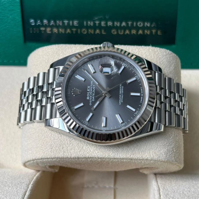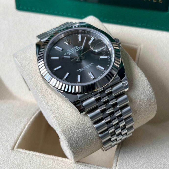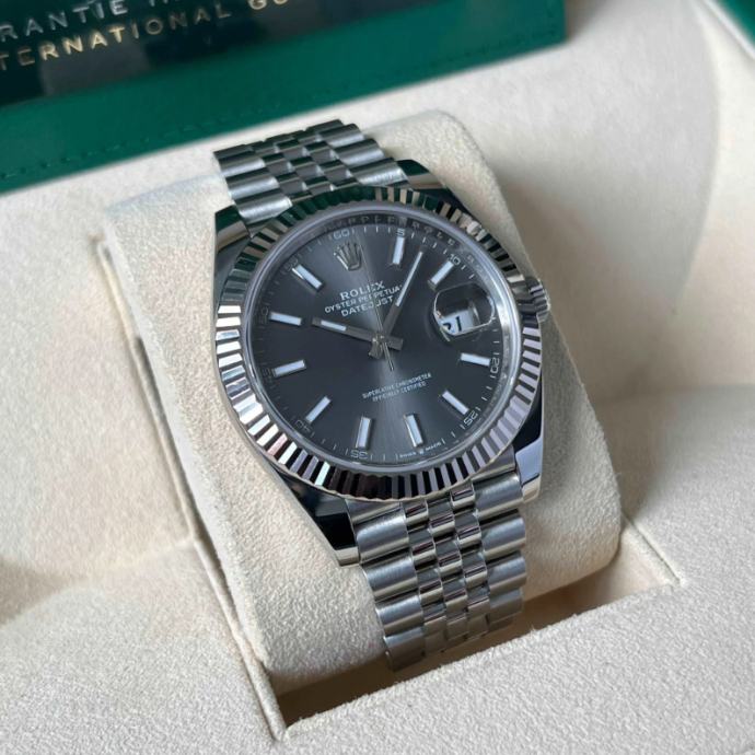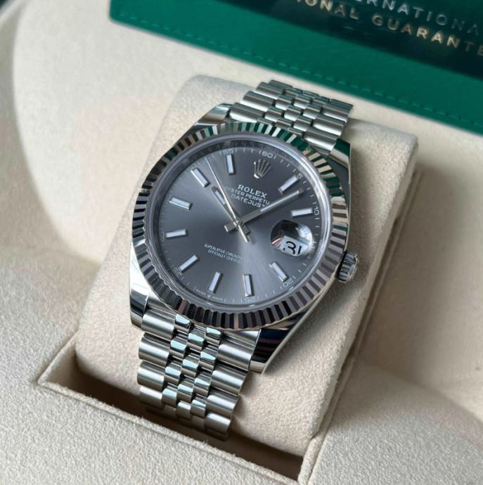 Prodajem novi upakiran sat Rolex DATEJUST 41mm Jubilee (GREY SIVI DIAL) sa ETA 3235 automatskim mehanizmom. U pitanju je clon SOLID SWISS i ne replika 3A!!! Verzija sata je SOLID SWISS trenutno najbolji moguči kvalitet na tržištu, sat se proizvodi u Švicarskoj i dolazi direktno iz fabrike SOLID SWISS!