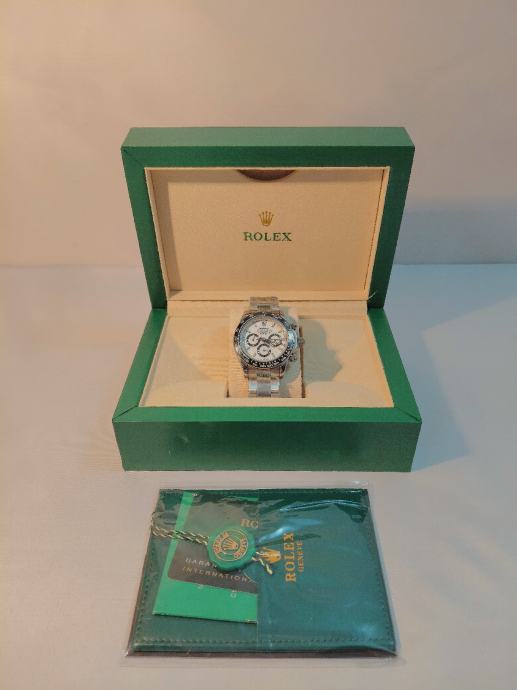 Prodajem potpuno novi Rolex Daytona sat s etiketom u vrhunskom pakiranju. Muški sat dolazi s kompletnom dokumentacijom i kutijom kao što je prikazano na slikama. Elegantan dizajn i prepoznatljiva kvaliteta brenda Rolex čine ovaj sat savršenim dodatkom svakoj kolekciji.