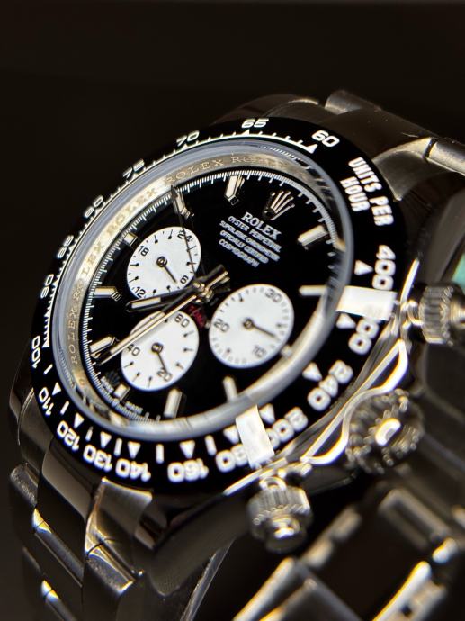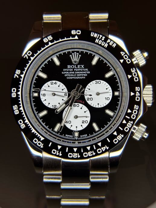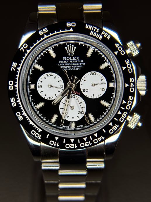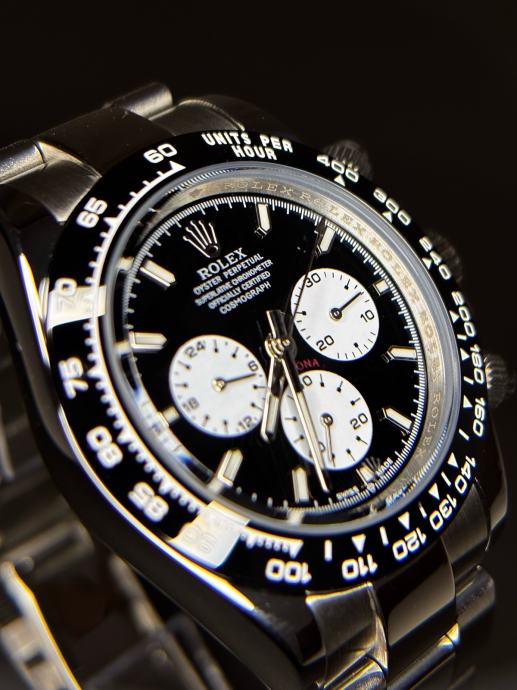 Legendarna Daytona 39 mm s automatskim Cal. 4130 (72h rezerva hoda), čelično kućište, keramička luneta, vodootporna 100m.
