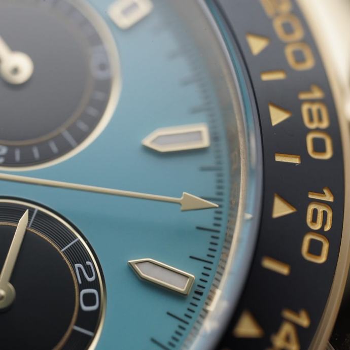 Kučište i narukvica su izrađeni od 1:1 visokokvalitetnog nehrđajućeg čelika 904L (koristi se i za izradu originala) sa kombinacijom brušenih i visoko poliranih površina. Kopča na preklop Flick-lock s uglačanim logotipom krunice Rolex. Glide lock sistem podešavanje dužine narukvice. Sat ima 100% staklo od safirnog kristala s AR (antirefleksnim) premazom, koje je otporno na ogrebotine i sprječava refleksiju svjetlosti (švicarski standard, obostrani, isti kao i originalni). Luneta crni Cerachrom u jednom komadu, u keramici, s utisnutom tahimetrijskom skalom, s platinastim duboko graviranim markerima, otporna na ogrebotine. Tirkizno plavi i crni brojčanik ovog modela s kružnim podbrojčanicima ima satne oznake s aplikacijama od 18-karatnog zlata. Superlumed brojčanik i kazaljke u ispravnoj plavoj boji, koja traje do 9h, identičan font i debljina kod svakog broja. Savršeno obrađene završne ivice ispunjene luminacijom kod kazaljki. Lasersko graviranje sa serijskim brojem, original težina sata, ugravirana kruna u staklu na 6h.