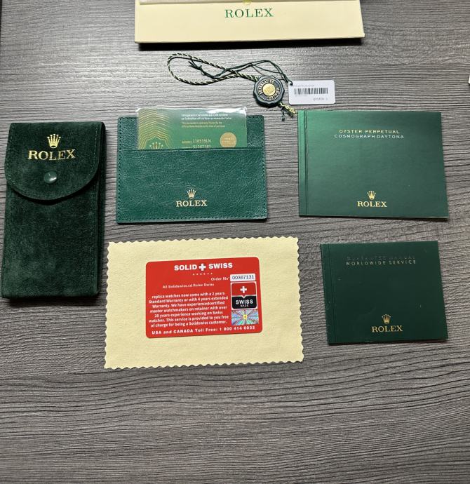 Kvaliteta i klasa sata je SOLID SWISS, dakle, najbolja i trenutno najviša koja postoji na tržištu. Svaki Solid Swiss clon je izrađen kompletno ručno i ne serijski. Cijena sata je 1800€. U kompletu dobijate i originalno premium full set pakovanje sa Rolex kutijom, zaštitom za kutiju, putnom torbicom, vrećicom, svom papirologijom (ID card, certifikat, garancijski list). Svaki sat poseduje Warranty green card sa Infrared hologramom i unikatnim serijskim brojem koji je identičan na satu.