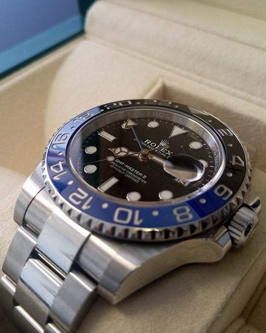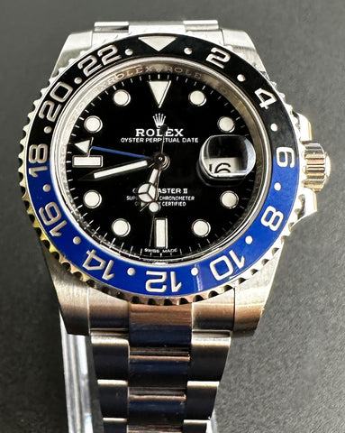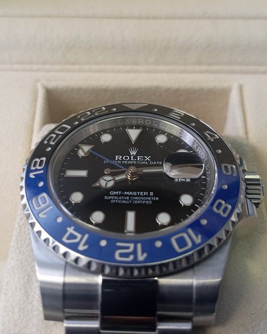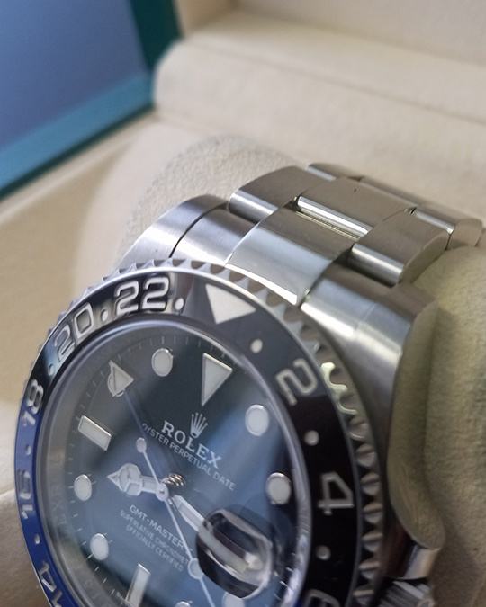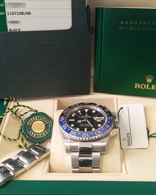 Kučište i narukvica su izrađeni od 1:1 visokokvalitetnog nehrđajućeg čelika 904L (koristi se i za izradu originala) sa kombinacijom brušenih i visoko poliranih površina. Kopča na preklop Flick-lock s uglačanim logotipom krunice Rolex. Sat ima 100% staklo od safirnog kristala s AR (antirefleksnim) premazom, koje je otporno na ogrebotine i sprječava refleksiju svjetlosti (švicarski standard, obostrani, isti kao i originalni). Luneta je bi-direkcionalno rotirajuća, prava plavo-crna boja s platinastim duboko graviranim markerima, klik zvuka je odrađen savršeno. Superlumed brojčanik i kazaljke u ispravnoj plavoj boji, identičan font i debljina kod svakog broja. Savršeno obrađene završne ivice ispunjene luminacijom kod kazaljki. Nezavisno podešavanje satne kazaljke, omogučava podešavanje GMT vremena. Lasersko graviranje sa serijskim brojem, original težina sata, povečalo datuma, ugravirana kruna u staklu na 6h. Funkcije: sati, minuti, sekunde, datum i GMT display.