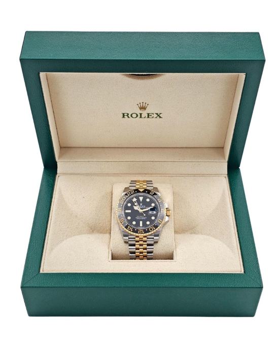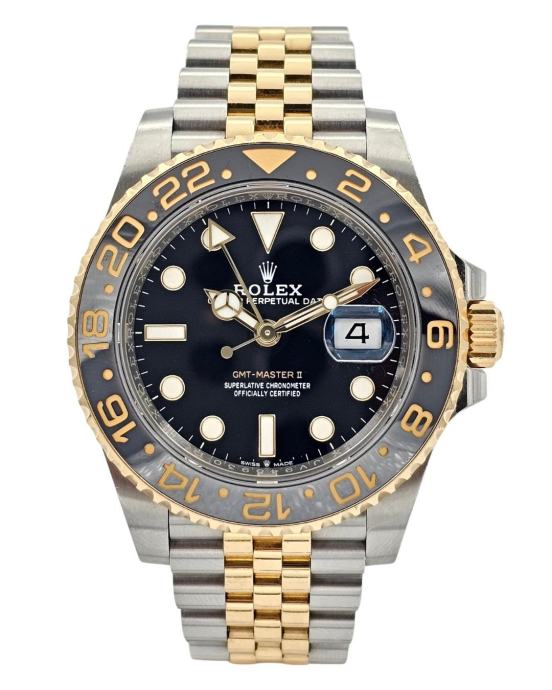 Kućište je izrađeno u atraktivnoj kombinaciji nerđajućeg čelika i žutog zlata, pružajući snažan vizuelni identitet i luksuzan utisak. Karakteristični bezel sa dvobojnom skalom omogućava jednostavno očitavanje druge vremenske zone, dok brojčanik sa luminiscentnim indeksima i kazaljkama obezbeđuje odličnu čitljivost u svim uslovima. Safirno staklo sa Cyclops sočivom iznad datuma dodatno naglašava autentičan Rolex potpis. Unutar sata nalazi se pouzdan Rolex automatski mehanizam, projektovan prema visokim standardima preciznosti i dugotrajnosti. Narukvica u kombinaciji čelika i zlata pruža udobnost i stabilnost, čineći ovaj model pogodnim za svakodnevno nošenje, ali i za ozbiljne kolekcionarske kolekcije.