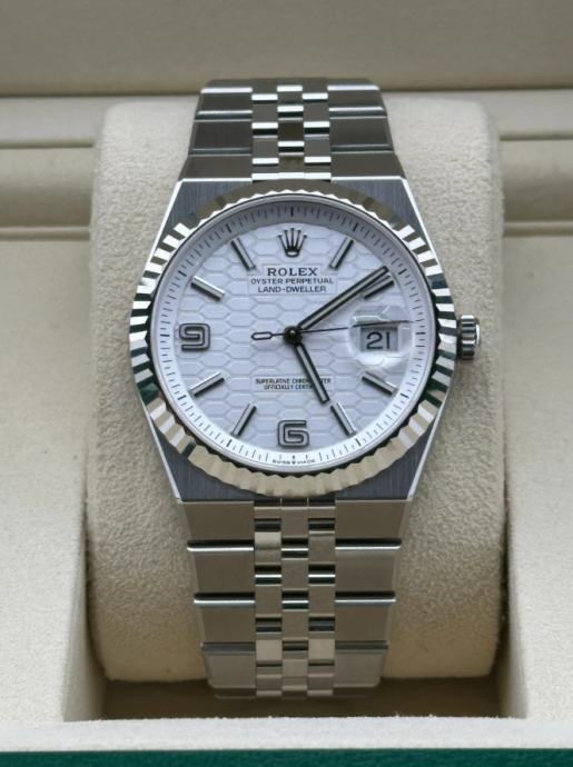 Prodajem novi upakiran sat Rolex LAND DWELLER 40mm Jubilee (WHITE DIAL) sa ETA 7135 automatskim mehanizmom. U pitanju je clon SOLID SWISS i ne replika 3A!!! Verzija sata je SOLID SWISS trenutno najbolji moguči kvalitet na tržištu, sat se proizvodi u Švicarskoj i dolazi direktno iz fabrike SOLID SWISS!