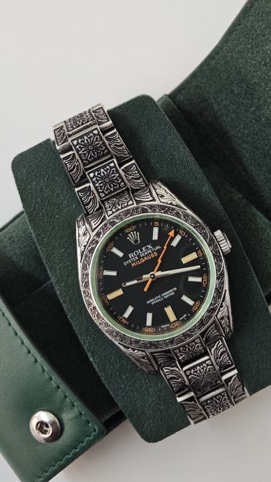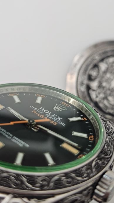 prekrasan čelični Milgauss. Ovaj potpuno ručno gravirani Rolex majstorsko je djelo izrade. Iznimno visoka razina izrade čini ovaj sat apsolutnim remek-djelom.