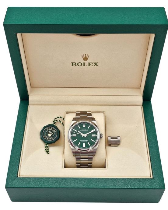 Rolex Oyster Perpetual 41 Green iz 2023. godine predstavlja savremen luksuz, investicionu stabilnost i bezvremenski dizajn u jednom od najpoželjnijih kolorita današnjice.