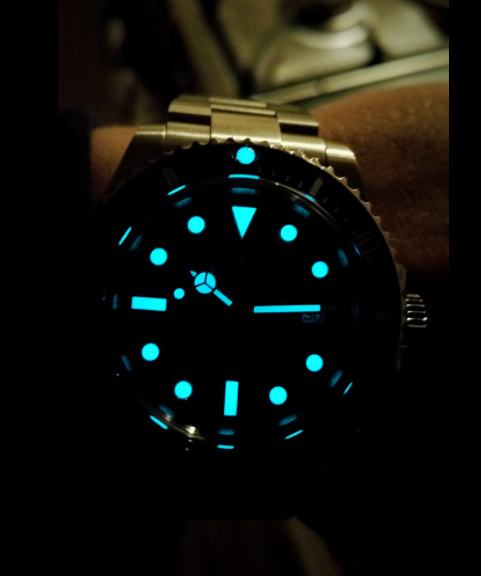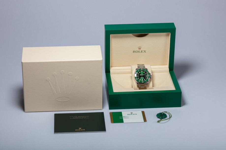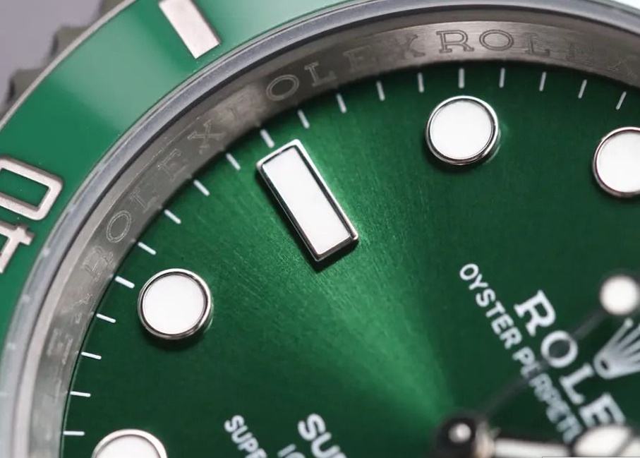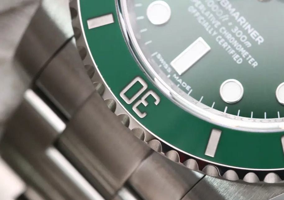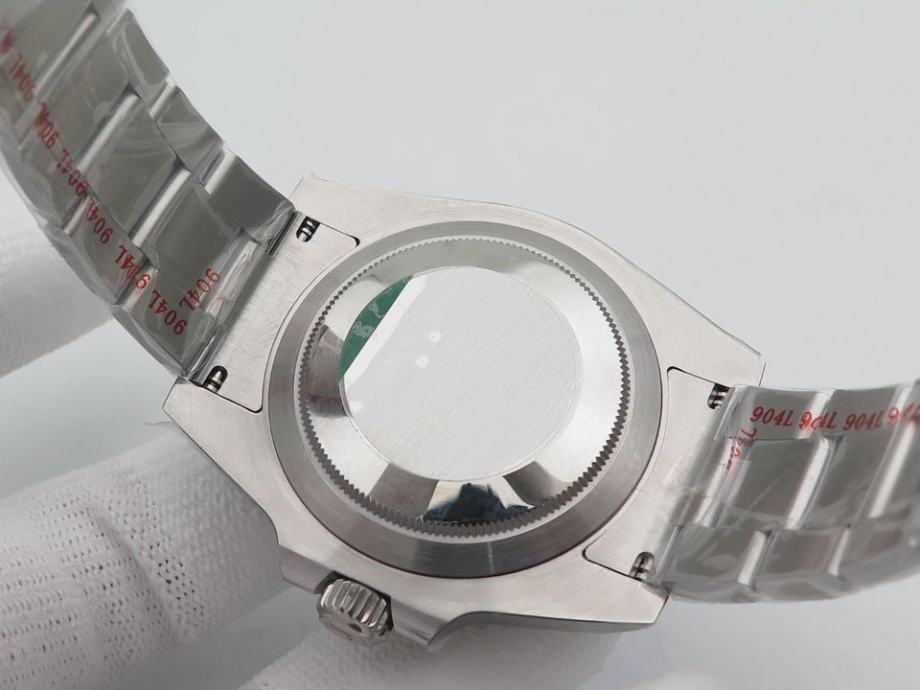 Kučište i narukvica su izrađeni od 1:1 visokokvalitetnog nehrđajućeg čelika 904L (koristi se i za izradu originala) sa kombinacijom brušenih i visoko poliranih površina. Kopča na preklop Flick-lock s uglačanim logotipom krunice Rolex. Glide lock sistem podešavanje dužine narukvice. Sat ima 100% staklo od safirnog kristala s AR (antirefleksnim) premazom, koje je otporno na ogrebotine i sprječava refleksiju svjetlosti (švicarski standard, obostrani, isti kao i originalni). Luneta je jednosmjerna rotirajuća, zelena (identična nijansa) keramična blago matirana s platinastim duboko graviranim markerima, klik zvuka je odrađen savršeno. Superlumed brojčanik i kazaljke u ispravnoj plavoj boji, identičan font i debljina kod svakog broja. Savršeno obrađene završne ivice ispunjene luminacijom kod kazaljki. Lasersko graviranje sa serijskim brojem, original težina sata circa 155 grama, povečalo datuma, ugravirana kruna u staklu na 6h.