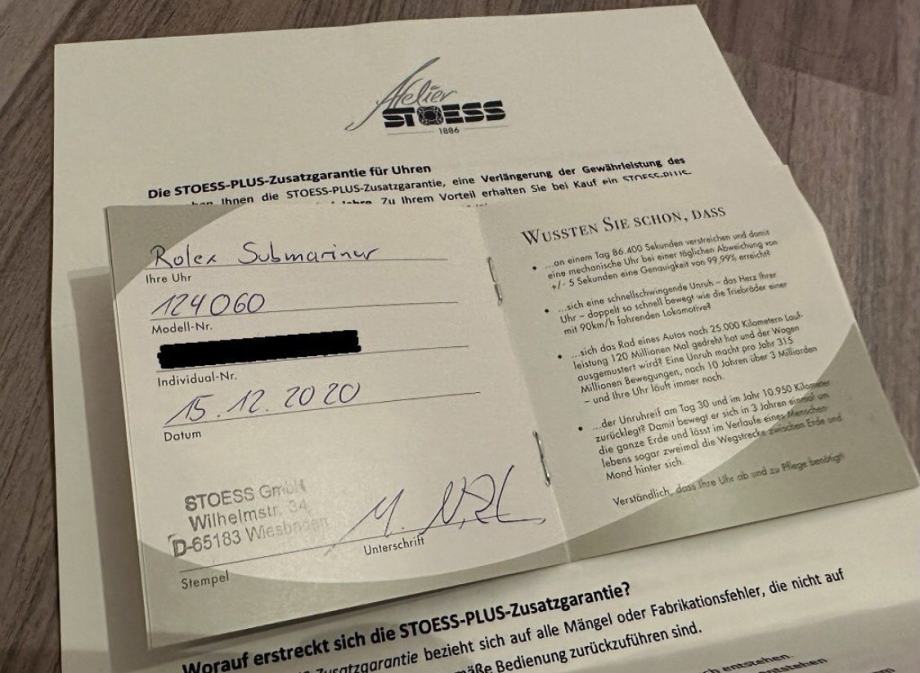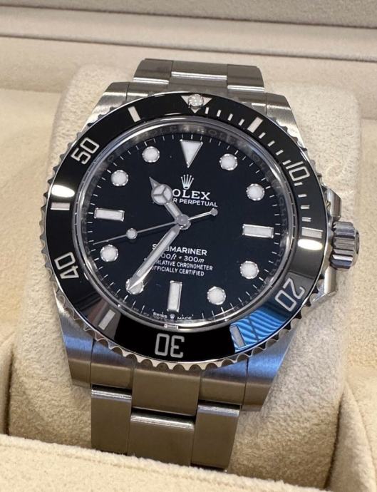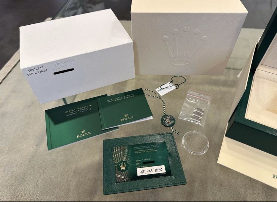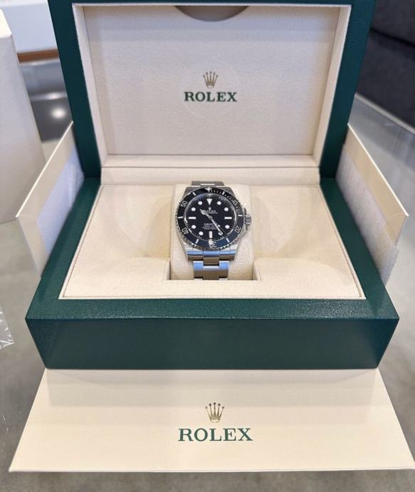 FIKSNA CIJENA i bez interesa za zamjenu. Ono što nije opisano također nije uključeno, a STANJE se vidi na slikama i opisu! Prodajem svoj Rolex Submariner no Date 41mm, referenca 124060 u odlicnom stanju. Sat je pažljivo nošen nekoliko puta i prilicno je ocuvan, vide se tek minimalni tragovi nosenja s donje strane kopče. Još uvijek ima 3 godine punog svjetskog Rolex jamstva do prosinca 2028. Sat je kupljen od službenog Rolexovog koncesionara Atelier Stoess 1886 u Wiesbadenu, dakle LC100. Dostupni su dokumenti o internom jamstvu za šok. FULL SET uključuje: - Rolex Submariner bez datuma - Rolexova podmorničarska knjižica - Rolex zaštitni prsten za okvir - Rolex pečat zelene boje - Rolex kutija - Rolex karton - Rolex držač kartice zeleni - Rolex jamstvena knjižica - Rolex upute za uporabu Privatna prodaja bez jamstva, jamstva i/ili povrata. Moguće je preuzimanje u Minhenu ,Zagrebu i Osijeku. moguca svaka provjera u ducanu po zelji!
