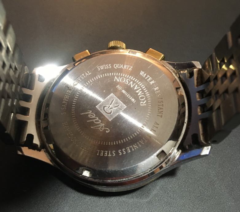 ROMANSON - - Swiss Quartz - Chronograph - Tachymeter. Osim nekoliko crtica na staklu, teško primjetnih, stanje izvrsno. Promjer samog stakla je cca 3,8cm.
