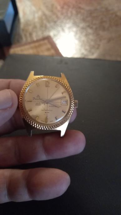 Prodajem ručni muški sat u zlatnoj boji. Radi se o satu bez narukvice, samo kućište s mehanizmom. Sat je u neispravnom stanju, pogodan za popravak ili kao dio za dijelove.Nedostaje poklopac mehanizma