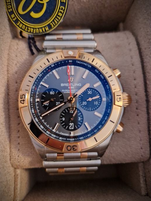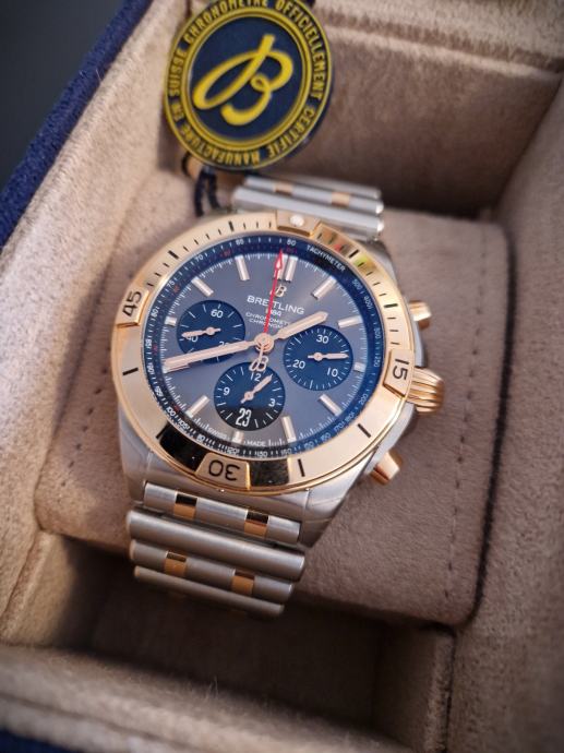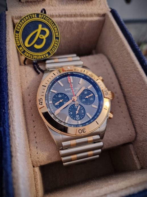 Prodajem nov, nekorišćen ručni sat BREITLING CHRONOMAT 42 rose gold pod garancijom 3 godine. Riječ je o pravom švicarskom satu prestižne marke BREITLING (certififkat u prilogu), što znači da kupnja može biti i dobra investicija. Sat je vrlo visoke kvalitete i ima sljedeće karakteristike dobre kvalitete: