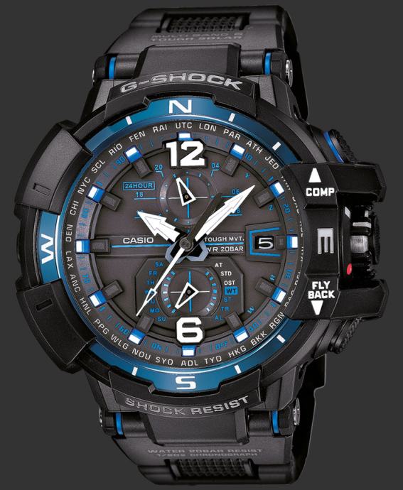 Novi model Casio G-shock sportskog ručnog sata serije GW-A1100FC-1AER. Otporan na udarce i vodu do 20 bara (200m dubine), solarno punjenje, radio korekcija vremena, neonski display, digitalni kompas, svjetski sat, štoperica, timer, dnevni alarm, automatski kalendar, safirno staklo otporno na ogrebotine...