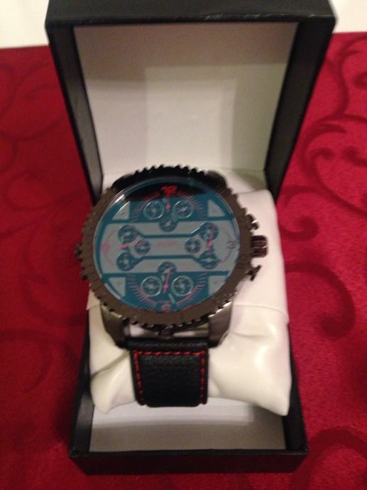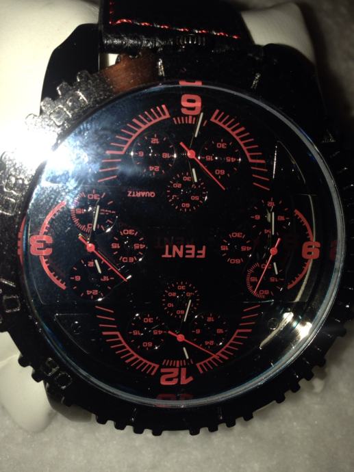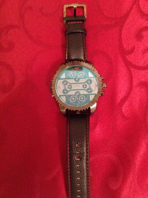 PRODAJEM CRNI NOVI RUCNI SAT FENT . SAT IMA NA DISPLEJU CETIRI SATA KOJA POKAZUJU VRIJEME. NOVO ZAPAKIRANO U KUTIJU DOBAR DIZAJN, KOŽNI REMEN.