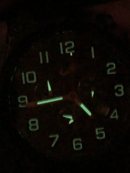 Oba sata imaju safirno staklo s anti-refleksnim premazom. Glavni sat ima dobru iluminaciju svih brojeva, kazaljki i čak totalizatora, dok mali sat nema luminovu. Nadalje, svjetiljka nije osobito jaka. Daje određenu količinu svjetla, ali daleko je od spektakularnog. Može dobro osvijetliti manje predmete na bliskoj udaljenosti ili poslužiti za osvjetljenje koraka, ali to je manje-više sve, pa je ne smatram posebno korisnom. Svjetiljka radi na četiri LR41 baterije, koje se lako zamjenjuju po potrebi.