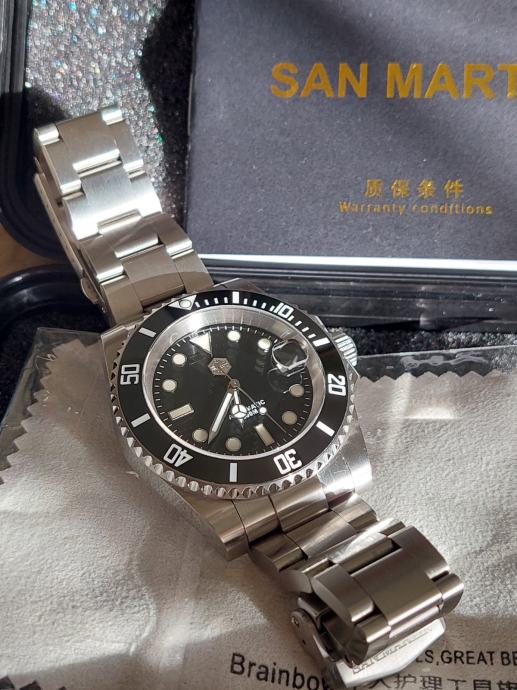 San Martin sub Sn017-G V3 prodajem, sat je u stanju novoga, nošen u kombinaciji sa drugim satovima. Hommage Submarinera.