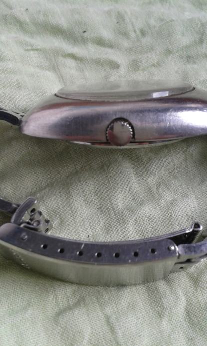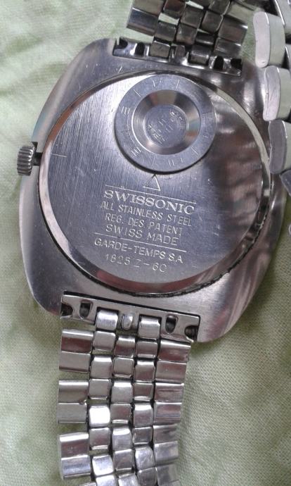 Kolekcionarski iznimno rijedak u ispravnom stanju, nova baterija, originalni electronic - swissonic sat, kombinirana elektronika i mehanika i kao takav prijelazni sat između quartz satova i mehanike krajem 60-tih godina prošlog stoljeća, originalne narukvice, dimenzije 45 x 40 mm. sa datumom.