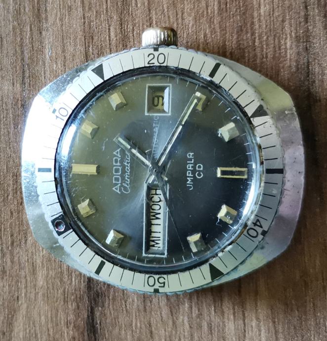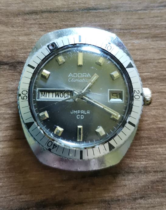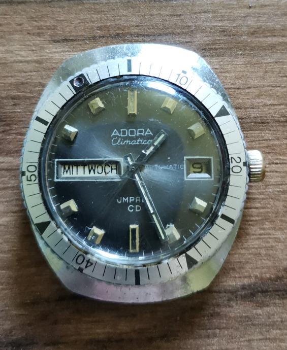 Vintage sat "ADORA" climatica Aautomatic..mehanizam DUROMAT 7525..promjer 42,5 x36 mm bez krunice..širina prihvata remena 18 MEHANIZAM ISPRAVAN I SAT RADI I DRŽI TOČNO VRIJEME.