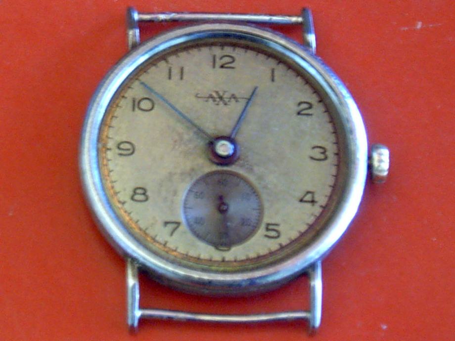 SAT "AXA"-MILITARY TIP- nosili ga za vrijeme NDH častnici vojnice, pomoćno zrakoplovno osoblje, zrakoplovno dojavništvo i protuzrakoplovno osoblje...pored Hanharta, Stime i AXU su koristili osoblje 52. lovačke pukovnije NDH-(III/JG52)....promjer 30 mm...ORIGINALNI REMEN IZ DOBA NDH U dobrom stanju...NOVO STAKLO...MEHANIZAM SERVISIRAN, ISPRAVAN I IZNIMNO TOČAN.