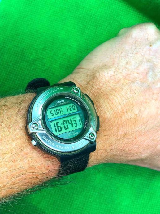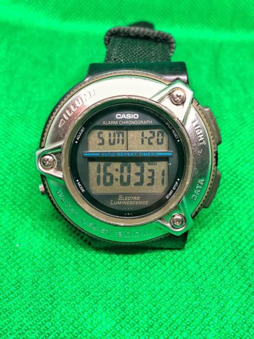Prodajem Casio DW 295 sa modulom 1874. Sat je negdje iz sredine 90-ih, moglo bi se reći malo rijeđi jer ih baš nema svugdje. Par komada na e bayu sa skoro duplom cijenom. Promjer je 45 mm, 200 m WR, dolazi sa dva remena, crni i zeleni. Bez kutije. Ima tragova nošenja ali ništa prestrašno. Lume mu je savršen, ima sve osnovne funkcije jednog digitalca plus diver timer (mjerenje vremena u vodi) pa ga još i zovu poor frogman.