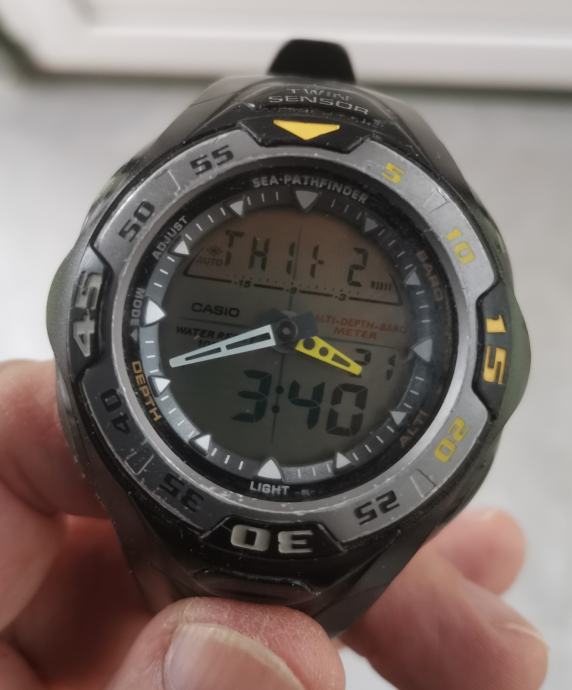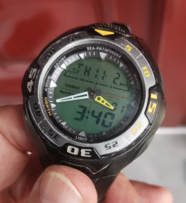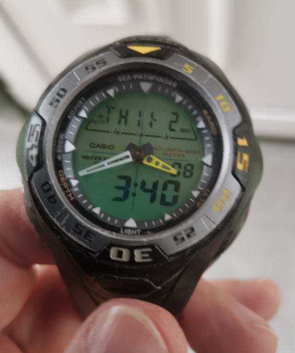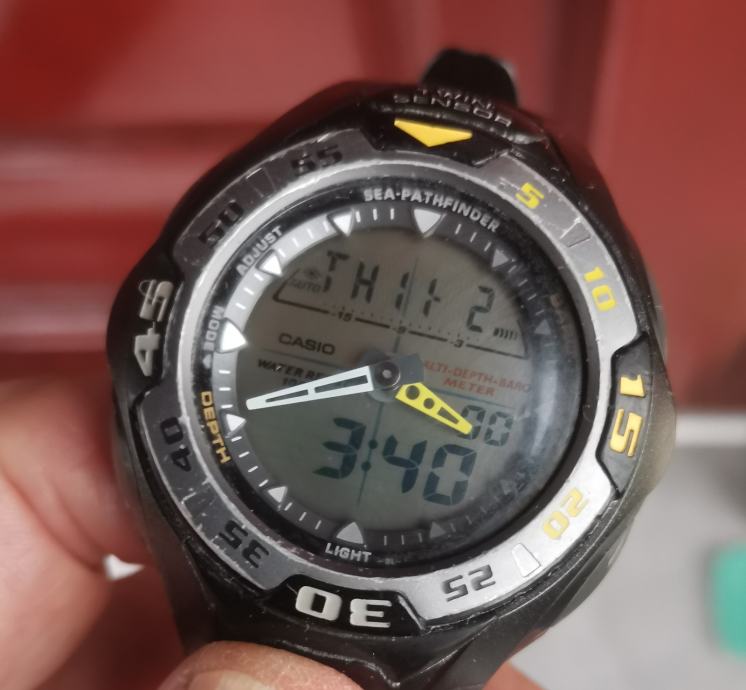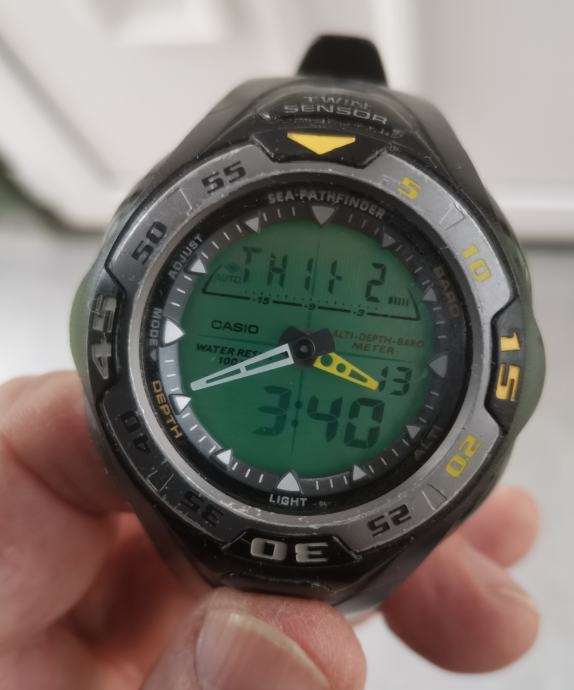 STANJE KAO NA FOTOGRAFIJAMA..02.11.2023. stavljena nova urarska baterija... AUTOMATSKO OSVJETLJENJE, BAROMETAR, ALARM, TIMER.MJERAČ DUBINE, ŠTOPERICA, KALENDR, TERMOMETAR, VISINOMJER...