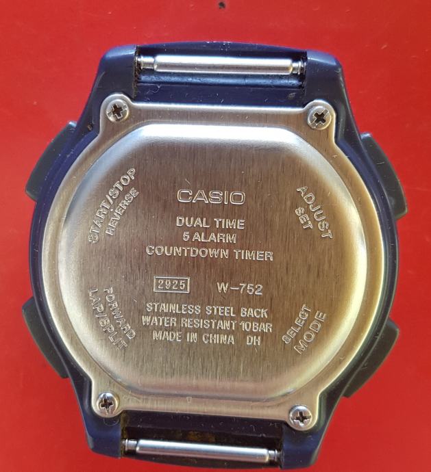 SAT "CASIO" W-752..MODUL 2925---vremenske zone, 5 alarma, odgođeni alarm..štoperica, automatski kalendar, osvjetljenje displeja...dugi vijek baterije..WR 100 metara..dobro sačuvano stanje..ispravan..bez remena